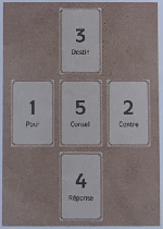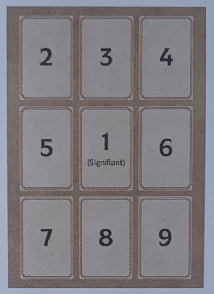 Odata ce tema este aleasa, puteti amesteca, taia, apoi asezati cartile. Sunteti liber sa utilizati comanda indicata sau sa o alegeti pe a dvs. Cheia este sa obtineti un patrat de 8 carti care inconjoara semnificantul (unii il acopera cu o noua pentru a indica fotele existente asupra problemei).