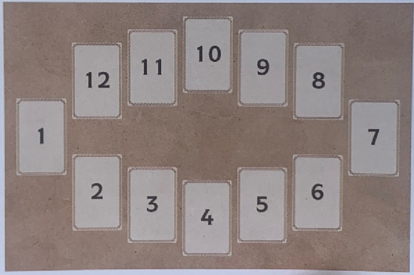 Amestecati, taiati si apoi asezati sapte carti de la stanga la dreapta. Acest joc spune o poveste sub forma unei cronologii, de la prezent la viitor, pe o tema aleasa anterior.